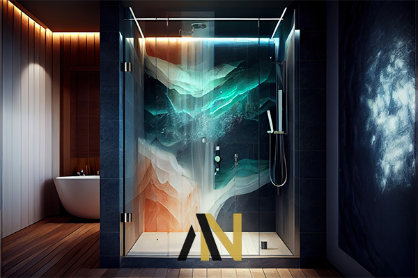 - دوش بارانی: حتی اگر فضای کافی برای وان ندارید، میتوانید با ساخت یک کابین دوش بزرگ (Walk-in Shower) با سردوشهای بارانی و جتهای ماساژ، تجربهای بینظیر از استحمام را برای خود فراهم کنید. استفاده از پارتیشنهای شیشهای بدون فریم، فضا را باز و مدرن نگه میدارد.