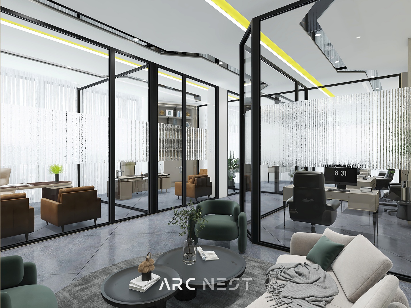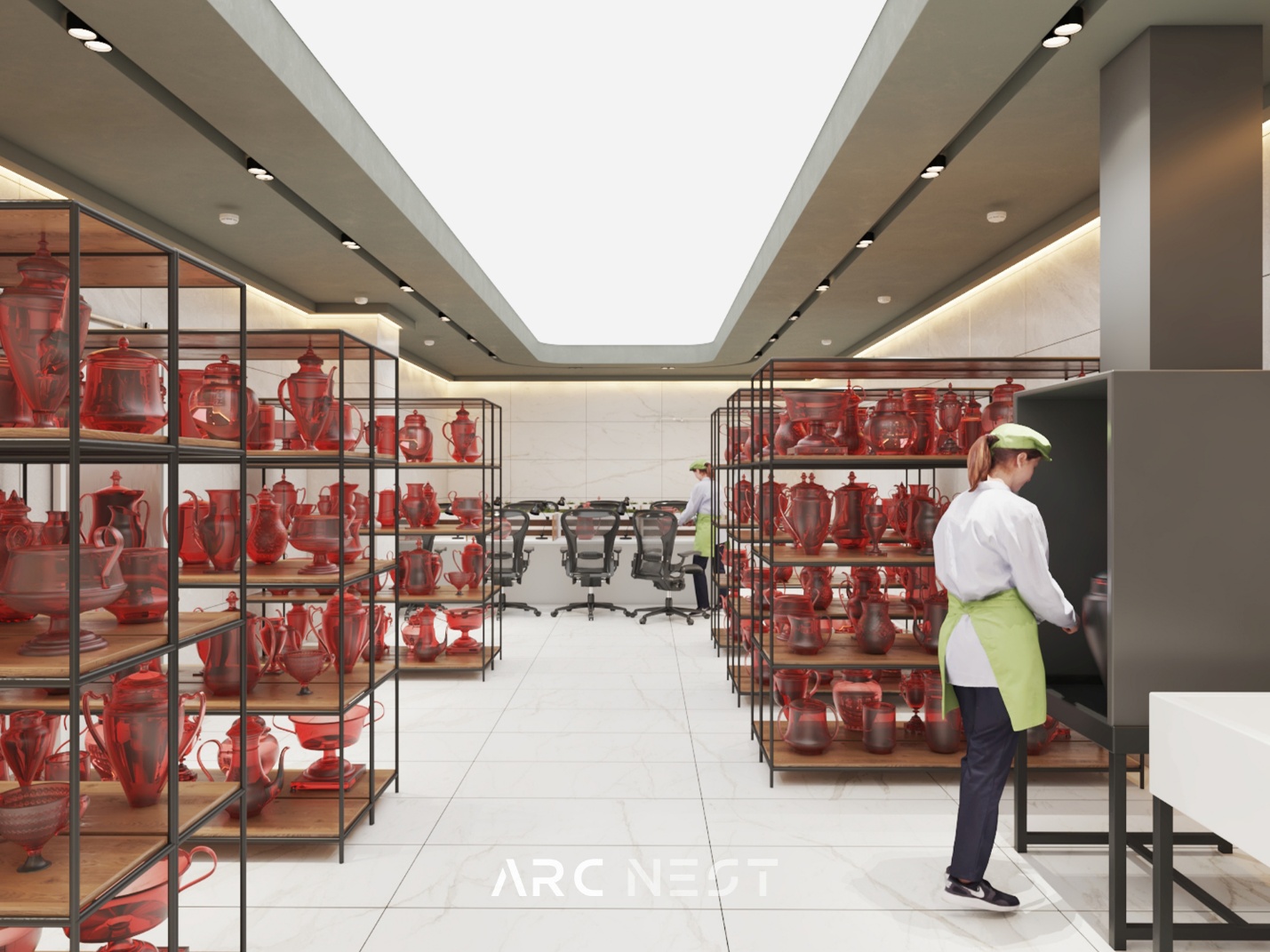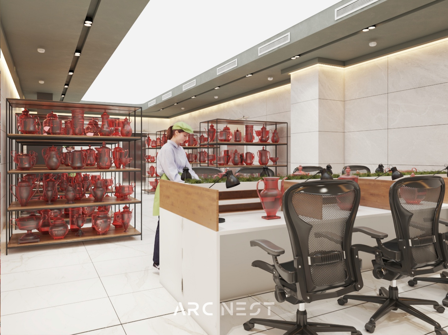 کارخانه کریستال تبریز با وسعتی چشمگیر در ۵ طبقه، یکی از پروژه‌های شاخص آرکنست در حوزه طراحی صنعتی به شمار می‌رود. در طبقه اول، کوره‌هایی با دمای ۱۷۰۰ درجه سانتی‌گراد قرار دارند که با استفاده از متریال مقاوم در برابر حرارت بالا و سقفی به ارتفاع ۸ متر طراحی شده‌اند.در طبقات بالاتر، فضاهای انبار، بسته‌بندی، دفاتر طراحی، کارگاه طلاکوبی، بخش اداری و مدیریت، هر یک با توجه به عملکرد تخصصی خود، طراحی و سازماندهی شده‌اند.